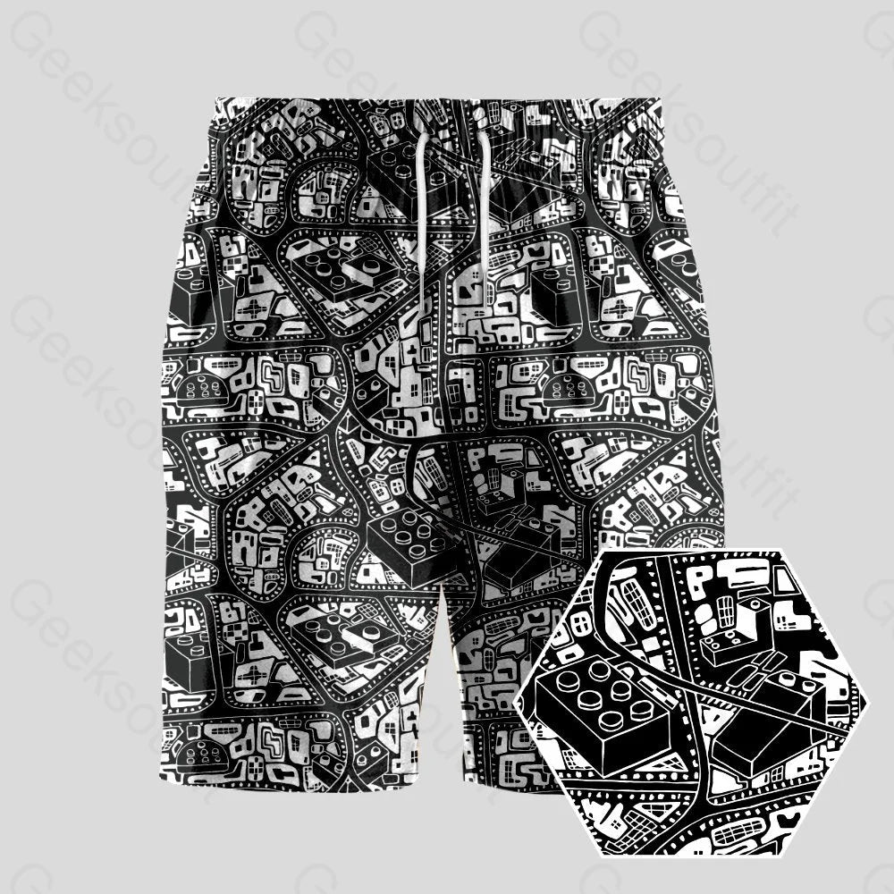 3D Map Lego Black Geeky Drawstring Shorts