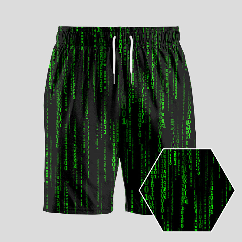 Binary Computer 1s and 0s Green Geeky Drawstring Shorts