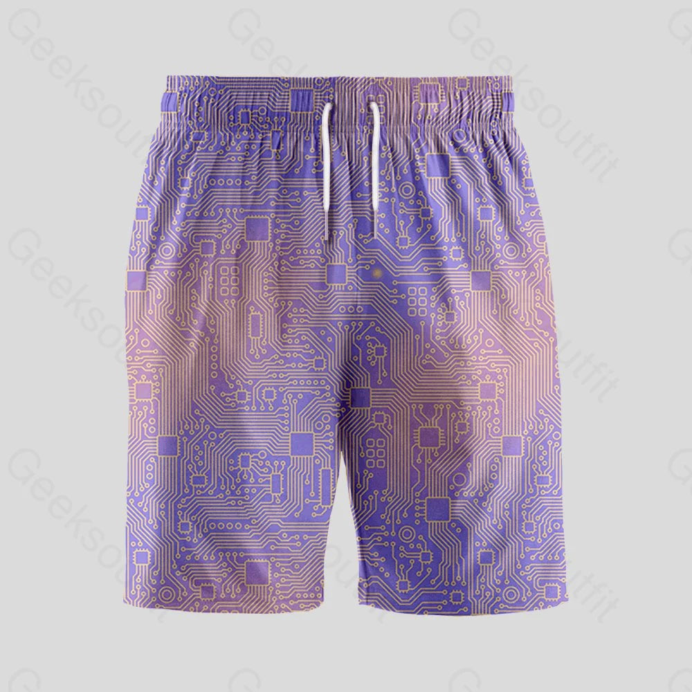 Computer Circuit Board Purple Geeky Drawstring Shorts