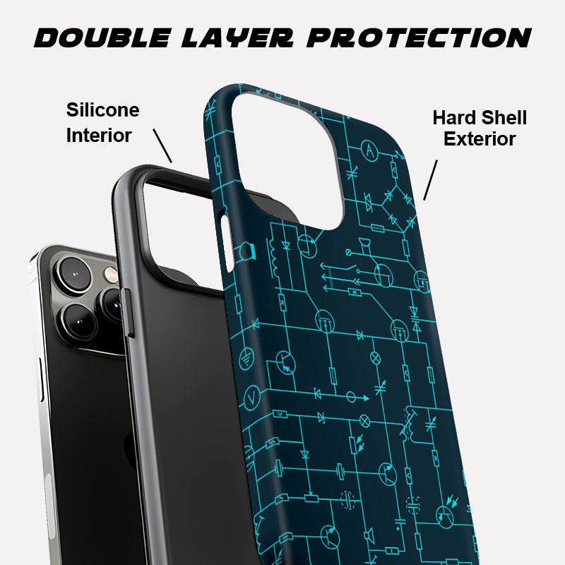 Gear up, tech warriors! Introducing the 2-in-1 Phone Case: your phone's elite defense against drops and dings. With a flexible silicone inner shield and a hard polycarbonate outer shield, plus a 2mm raised bezel lip to safeguard your screen, you get heavy-duty protection in a sleek, slim profile. Welcome to the elite squad of tech geeks who know how to protect their tech in style.