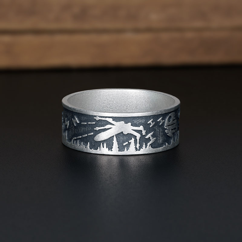 The Geek Silver Band Ring , crafted from 925 sterling silver and coated with oxide for an antique charm, is perfect for all genders.