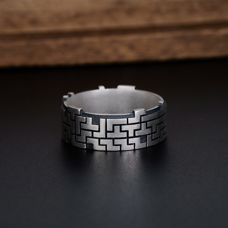 Tetris Geek Silver Band Ring