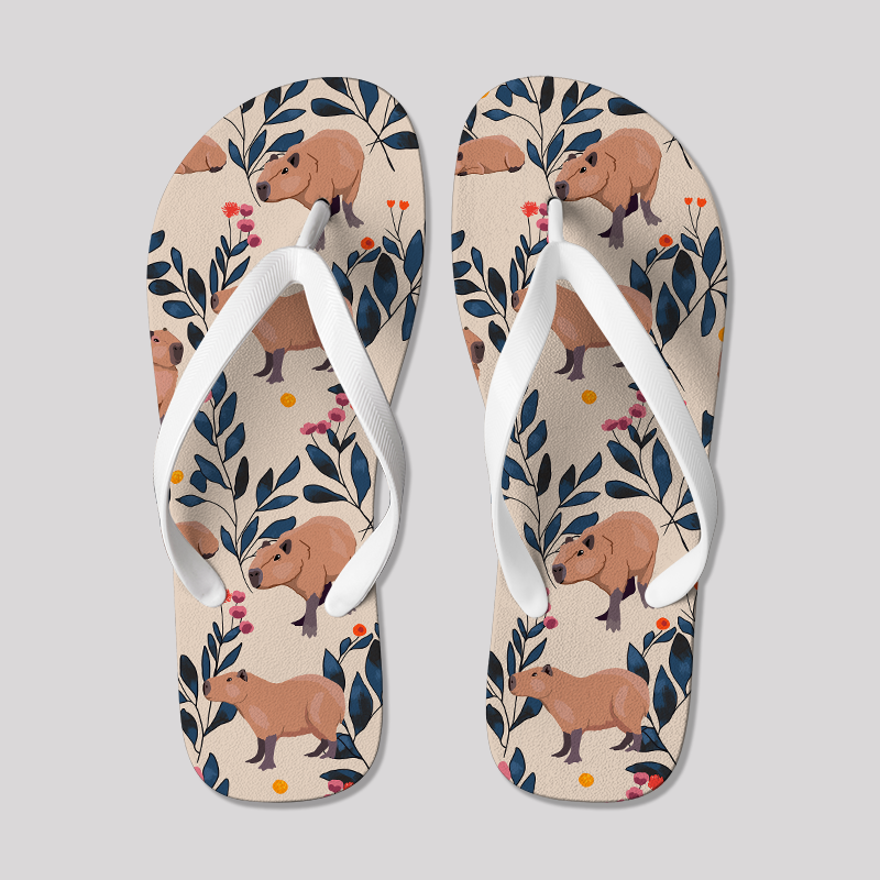 Capybara and Plants Geek Flip Flops