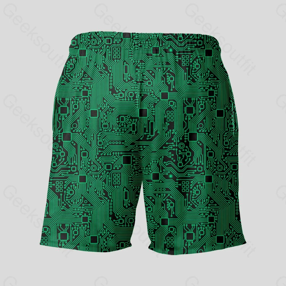 Computer Circuit Board Green Geeky Drawstring Shorts