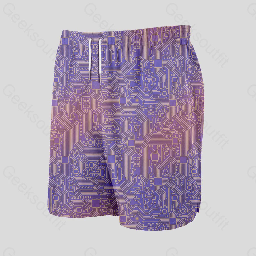 Computer Circuit Board Purple Geeky Drawstring Shorts