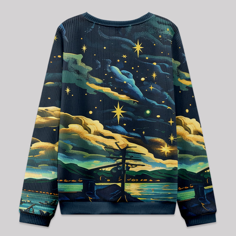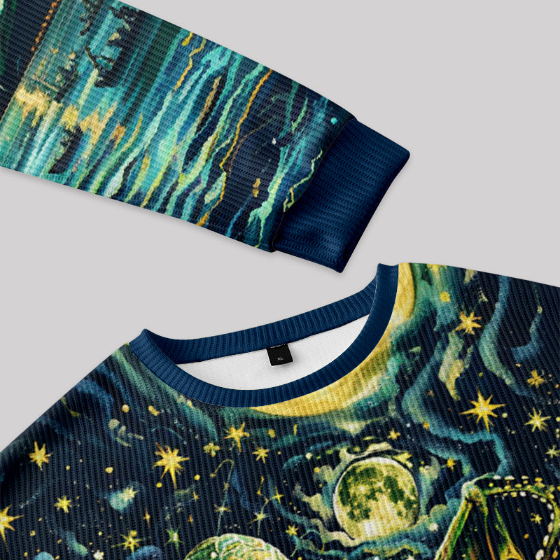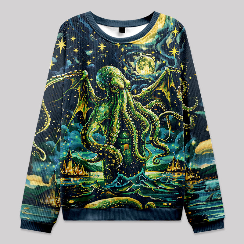 Cthulhu Starry Night Oil Painting Fuzzy Fleece Sweatshirt