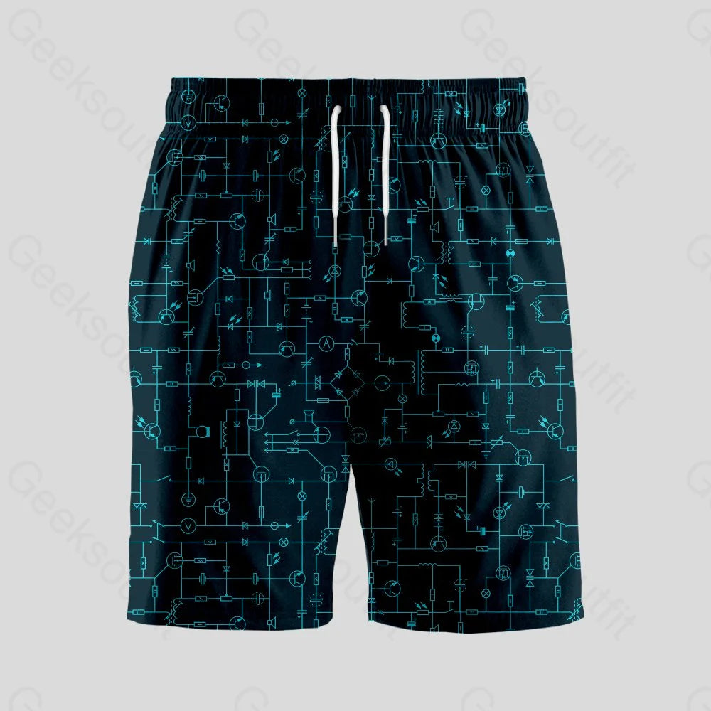 Electronic Components Arrow Dark Blue Geeky Drawstring Shorts