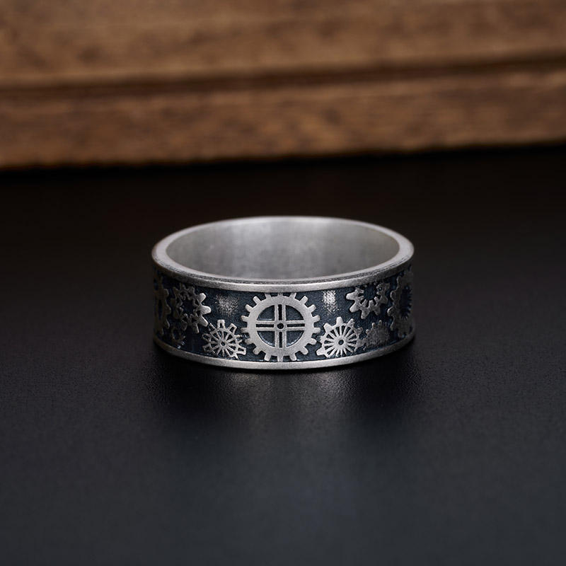The Geek Silver Band Ring , crafted from 925 sterling silver and coated with oxide for an antique charm, is perfect for all genders.