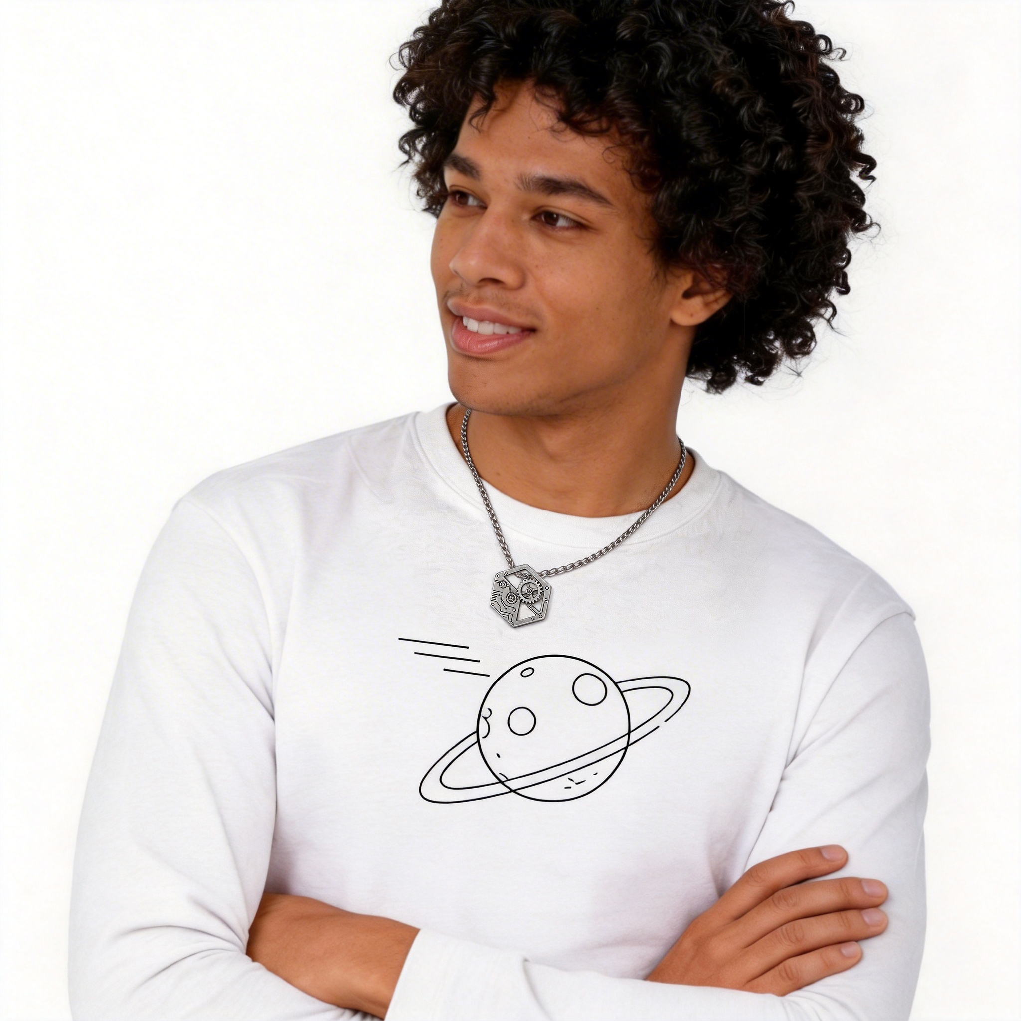 Our Geek Sculptural Necklace features a striking silver pendant with intricate designs, paired with a durable titanium steel figaro chain. Perfect for adding a unique, geek-inspired touch to any outfit.