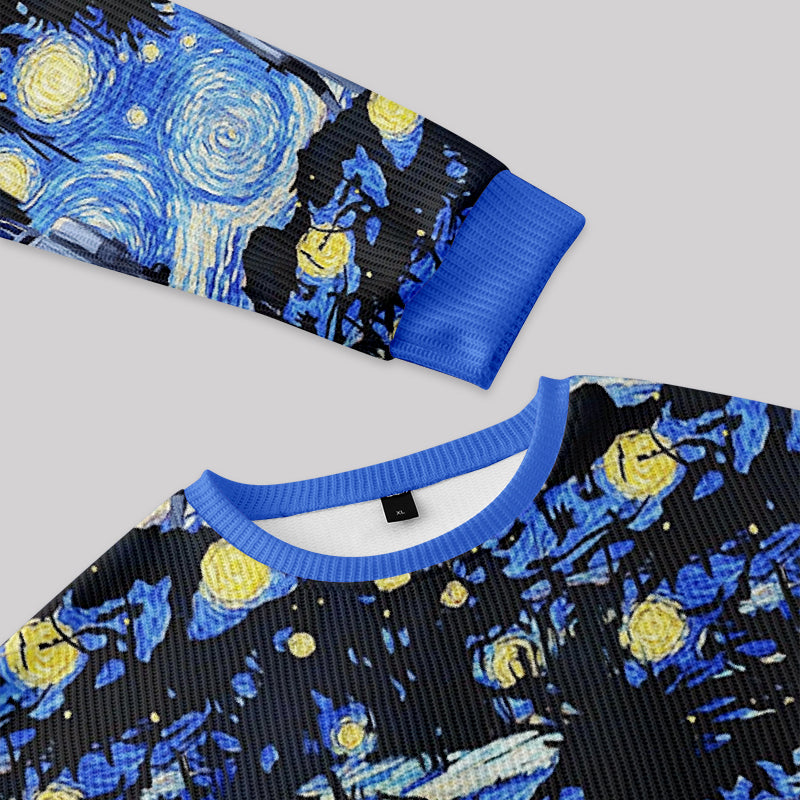 Robot Starry Night Fuzzy Fleece Sweatshirt