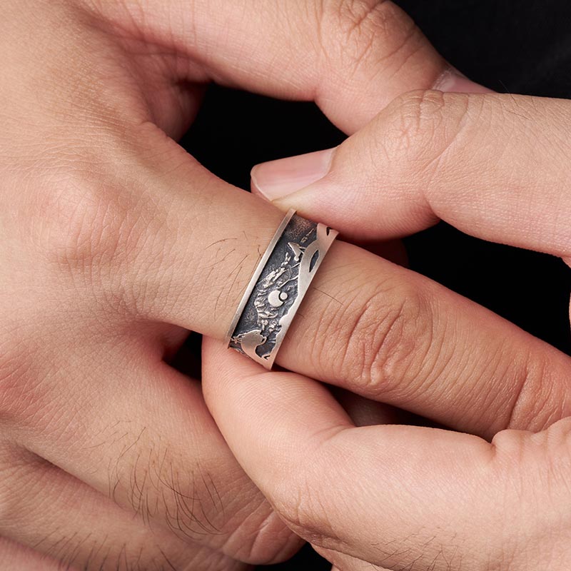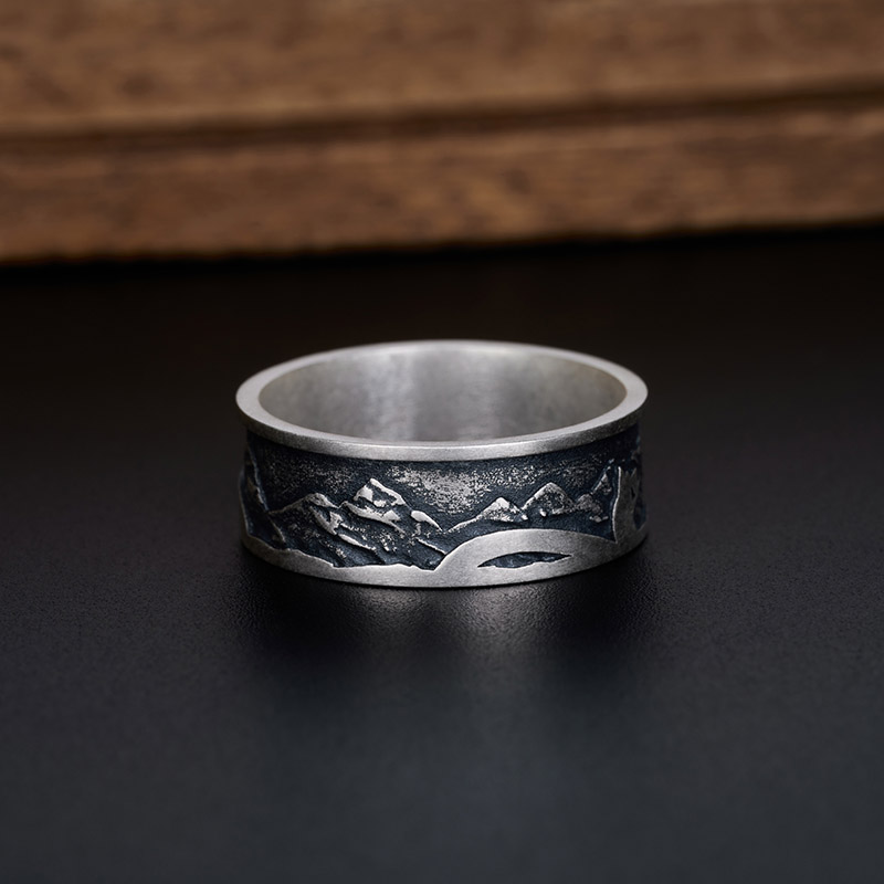The Geek Silver Band Ring , crafted from 925 sterling silver and coated with oxide for an antique charm, is perfect for all genders.