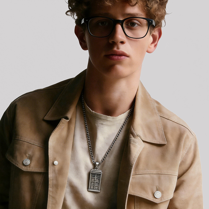 Our Geek Sculptural Necklace features a striking silver pendant with intricate designs, paired with a durable titanium steel figaro chain. Perfect for adding a unique, geek-inspired touch to any outfit.