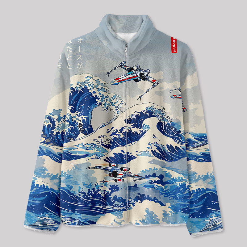 Ukiyoe wave fighter Fleece Jacket
