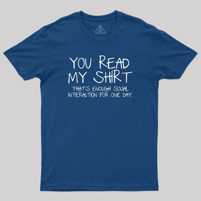 You Read My Shirt Thats Enough Novel Geek T-Shirt